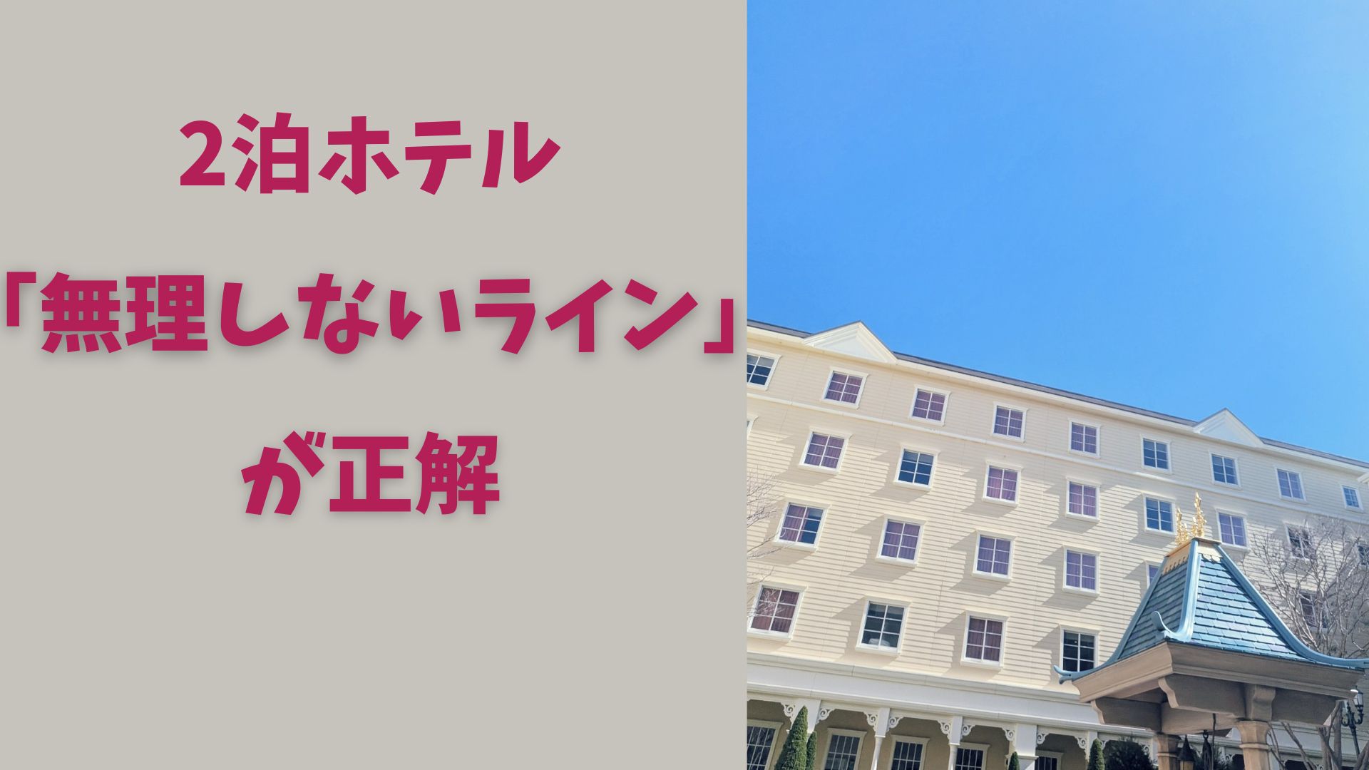 ワンオペディズニーで宿泊する場合、2泊のホテル選びは「安さ」か「近さ」どちらかに寄せすぎると失敗しやすくなります。